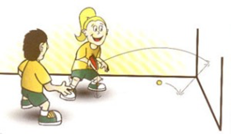 นัก เรียนสามารถกำหนดจุดให้ ตีโต้บนผนังได้(ดังรูป) โดยให้ตีโต้กับกำแพงสลับด้านหน้ามือ-หลังมือไปมา หรือนักเรียนจะผลัดกันตีคนละทีก็ประยุกษ์ใช้ได้เช่นกันครับ