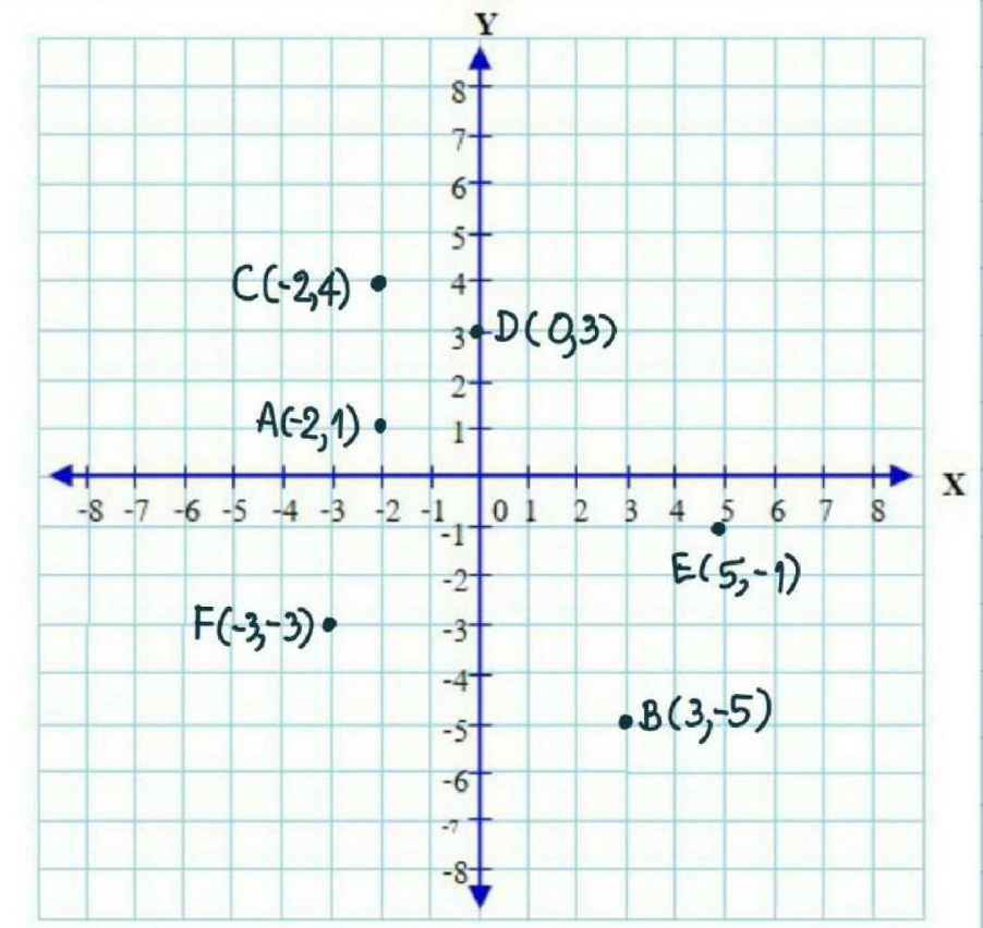 - A(-2, 1), B(3, -5), C(-2, 4), D(0,3), E(5, -1) และ F(-3, -3)