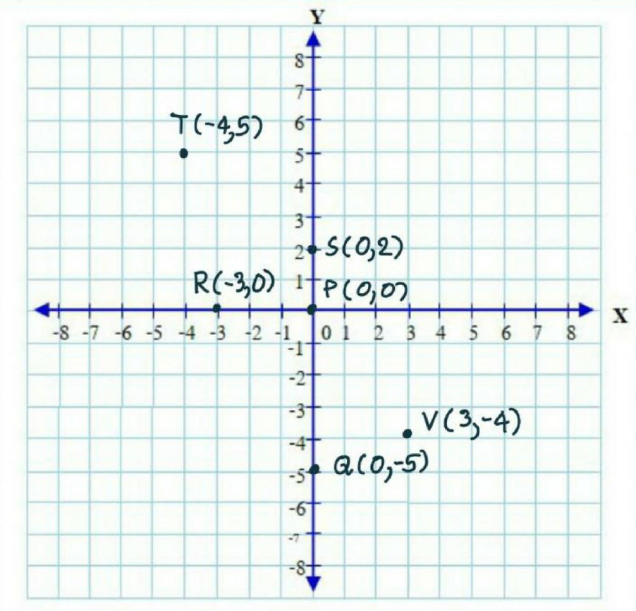 - P(0, 0), Q(0, -5), R(-3, 0), S(0,2), T(-4, 5) และV(3, -4)