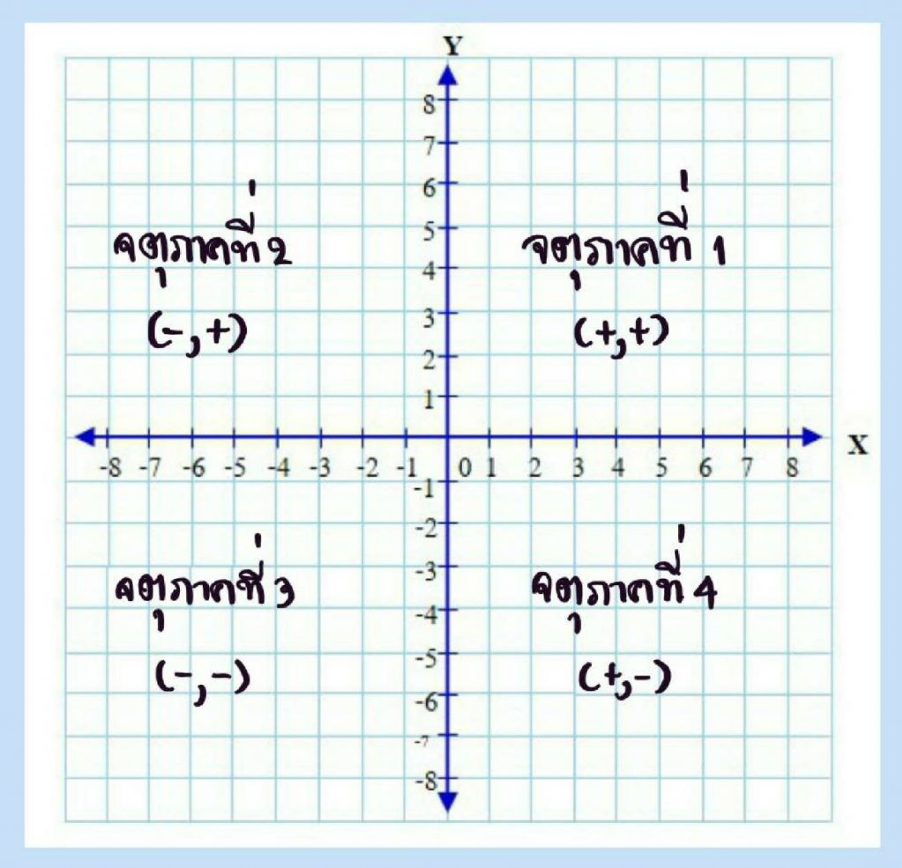 จตุภาคที่ 4 ระยะตามแกน X เป็นจำนวนบวก และระยะตามแกน Y เป็นจำนวนลบ