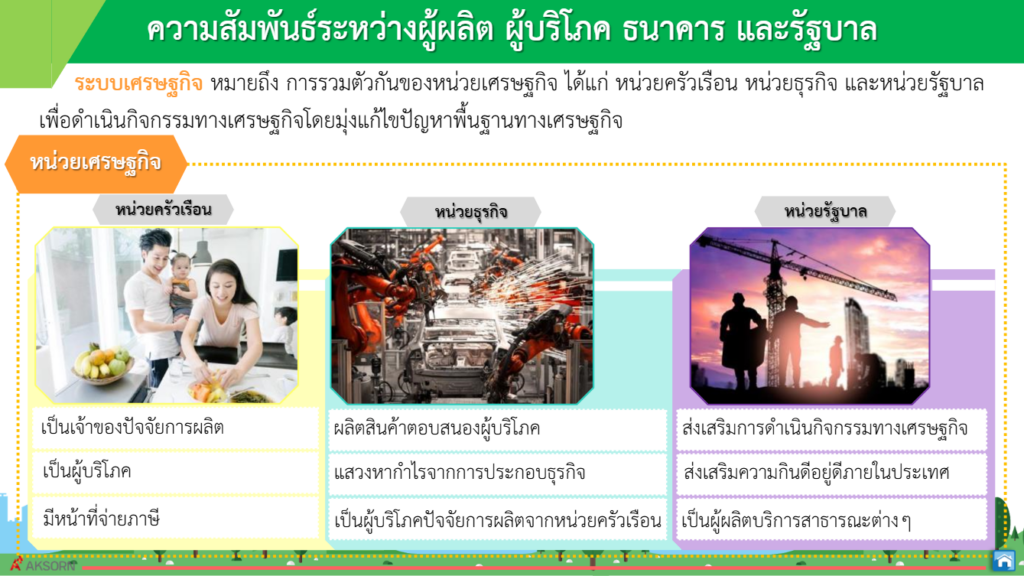 เรื่องที่ 1 ความสัมพันธ์ระหว่างผู้ผลิต ผู้บริโภค ธนาคาร และรัฐบาลที่มีต่อระบบเศรษฐกิจ