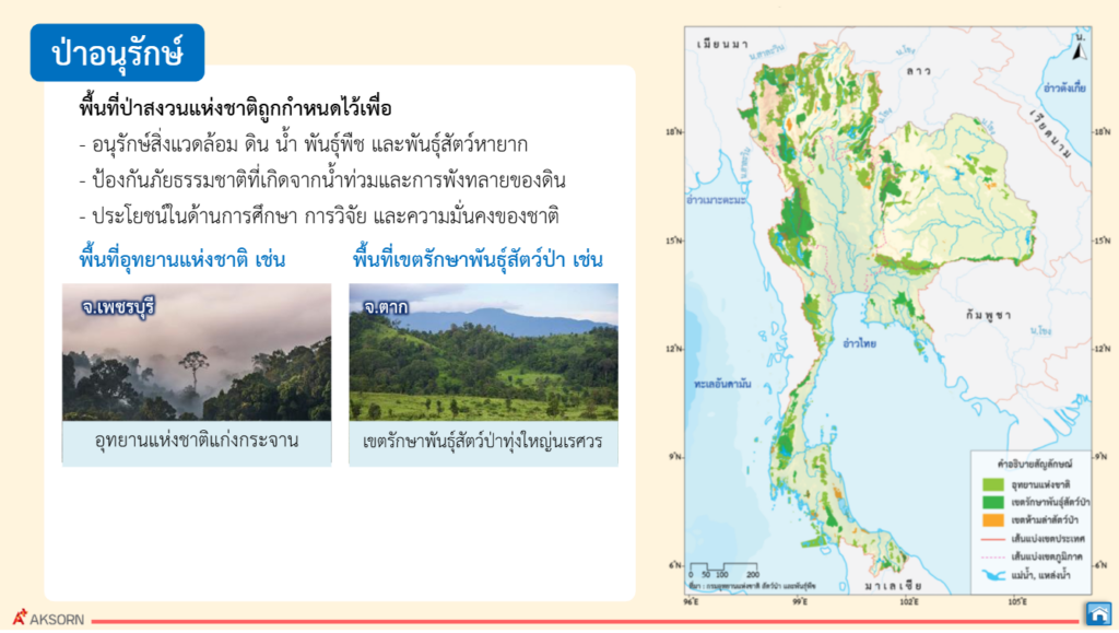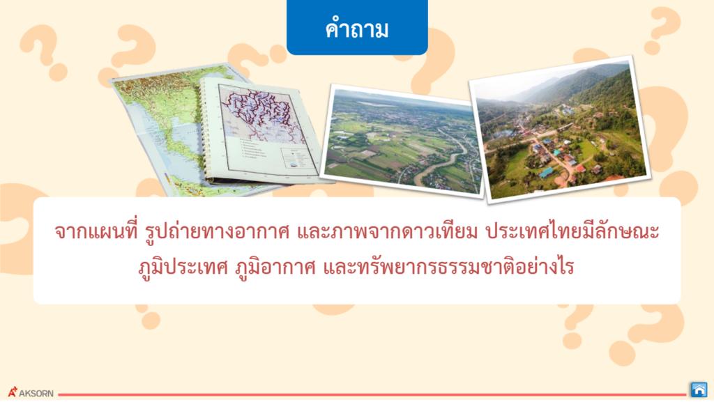 แผนที่ รูปถ่ายทางอากาศ และภาพจากดาวเทียม ใช้แสดงข้อมูลลักษณะทางกายภาพของประเทศไทย ภูมิประเทศ ภูมิอากาศ และทรัพยากรธรรมชาติส่งผลต่อกิจกรรมทางเศรษฐกิจและสังคมในประเทศไทย และขณะเดียวกันกิจกรรมทางเศรษฐกิจและสังคมในประเทศไทยก็ส่งผลให้เกิดการเปลี่ยนแปลงสิ่งแวดล้อม ทางกายภาพของประเทศไทยด้วย การเปลี่ยนแปลงทางกายภาพมีทั้งที่เกิดขึ้นเองตามธรรมชาติและจาก กิจกรรมของมนุษย์และการเปลี่ยนแปลงส่งผลต่อกิจกรรมทางเศรษฐกิจและสังคม