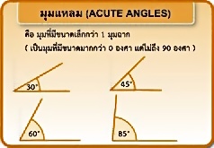 คือ มุมที่มีขนาดเล็กกว่ามุมฉาก เป็นมุมที่มีขนาดมากกว่า 0 องศา แต่ไม่ถึง 90 องศา