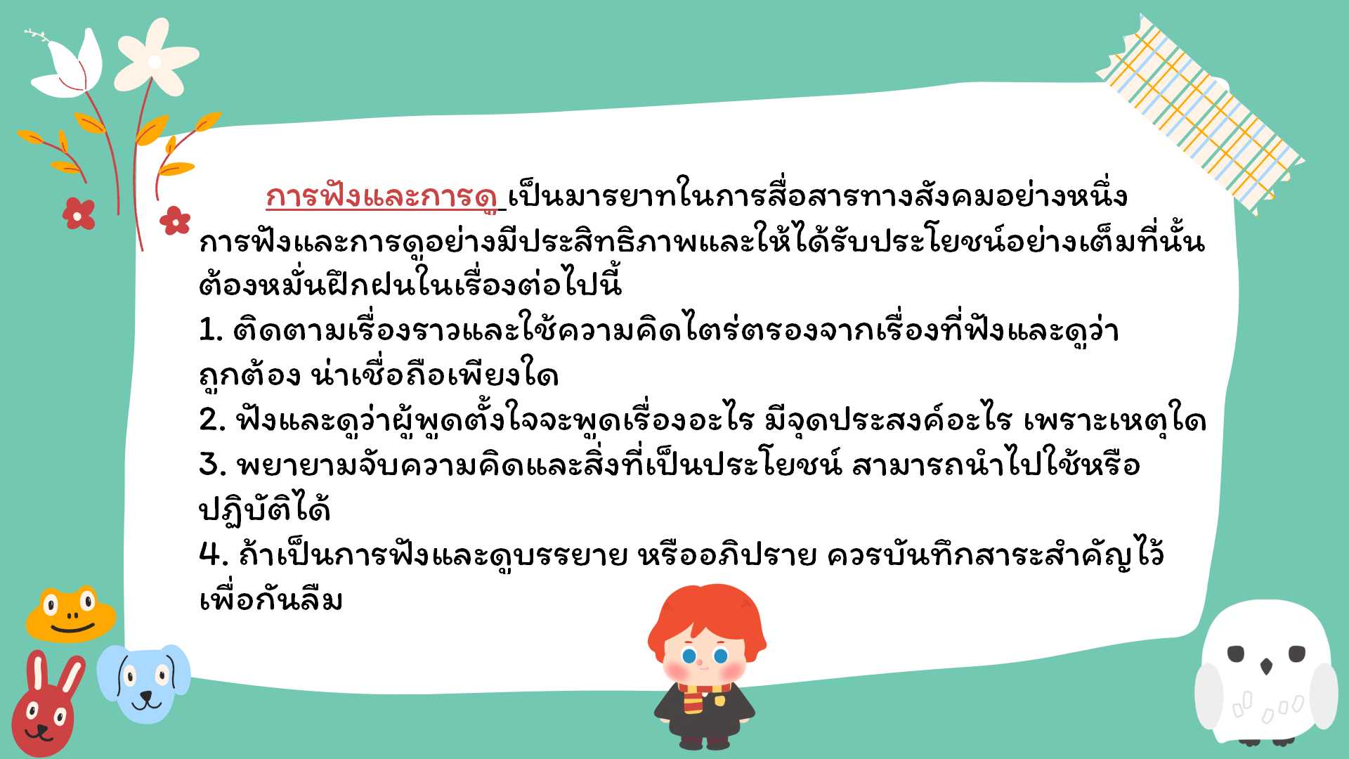 ใบงานมารยาทในการฟัง การดูและการสนทนา