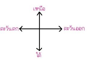๑) รู้จักทิศ โดยทั่วไปด้านบนของแผนที่เป็นทิศเหนือ ด้านล่างเป็น ทิศใต้ ด้านขวามือเป็นทิศตะวันออก และด้านซ้ายมือเป็นทิศตะวันตก บางแห่งอาจเขียนเครื่องหมายแสดงทิศไว้ ดังนี้