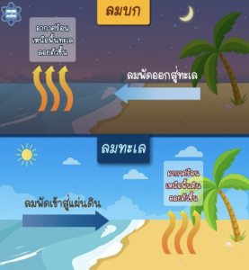 – ลมพัดจากทะเลเข้าหาฝั่ง