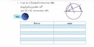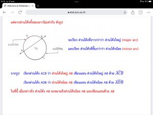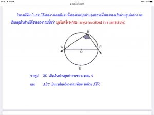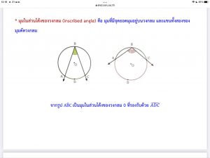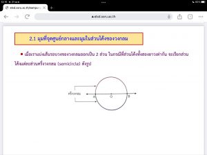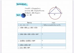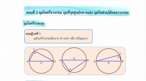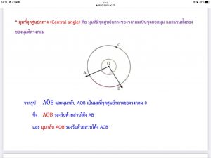 มุมที่จุดศูนย์กลางและมุมในส่วนโค้งของวงกลม